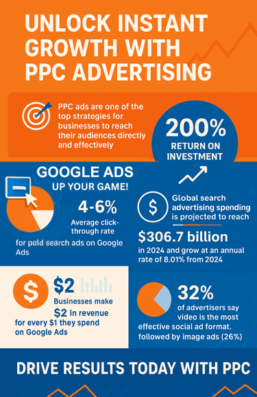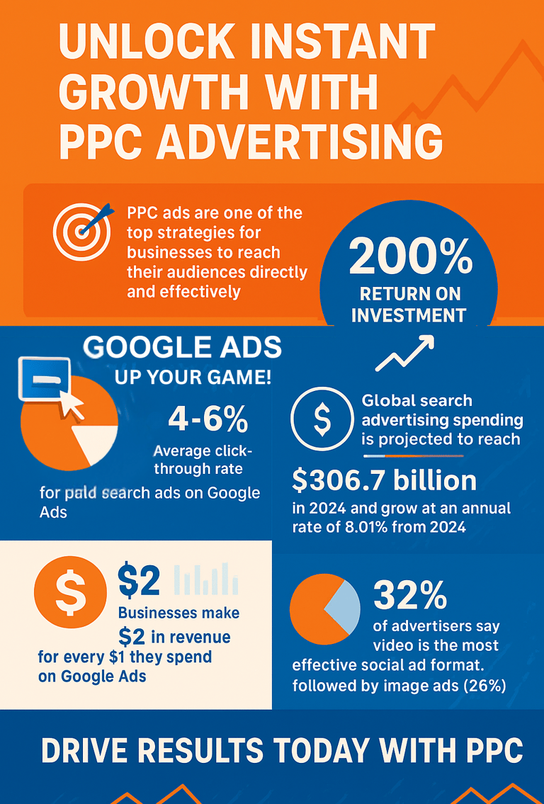 PPC ads are one of the top strategies for businesses to reach their audiences directly and effectively, generating a 200% return on investment (ROI), with businesses earning $2 for every $1 spent.